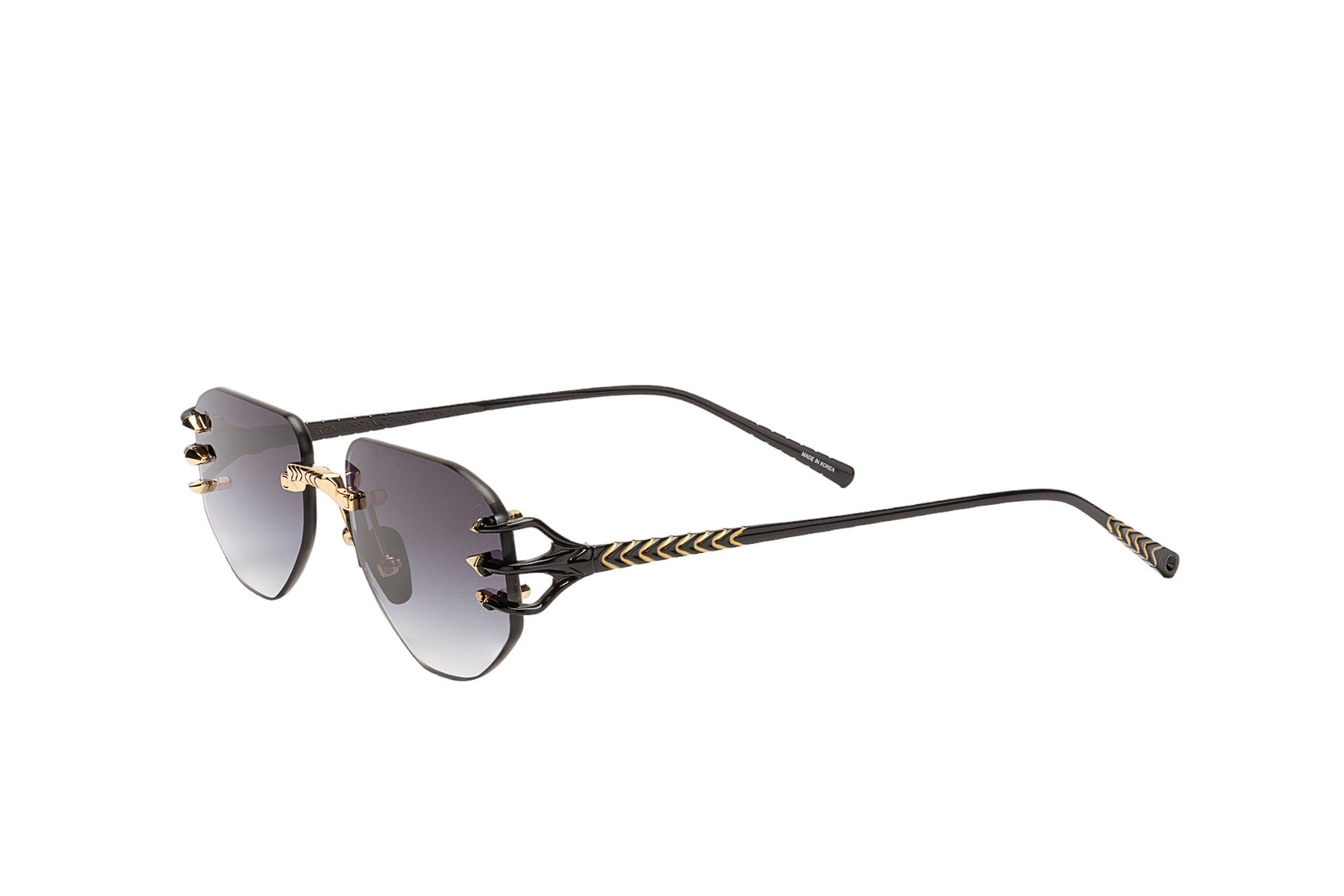 Noir total. Verres gris dégradés. Sombre en haut. Clair en bas. Le contraste de ceux qui tranchent.