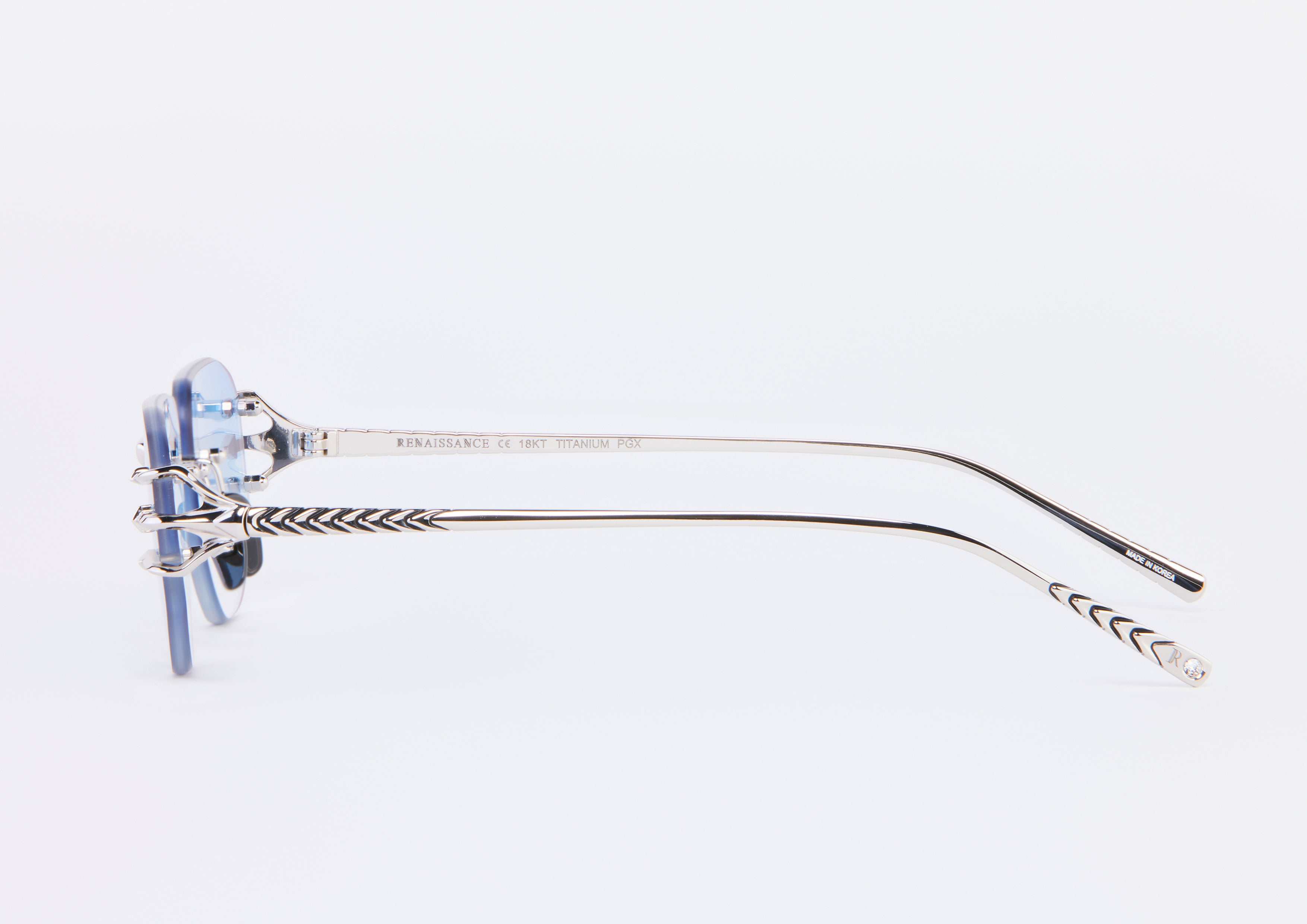 Titane plaqué or blanc 18Kt, finition argentée.